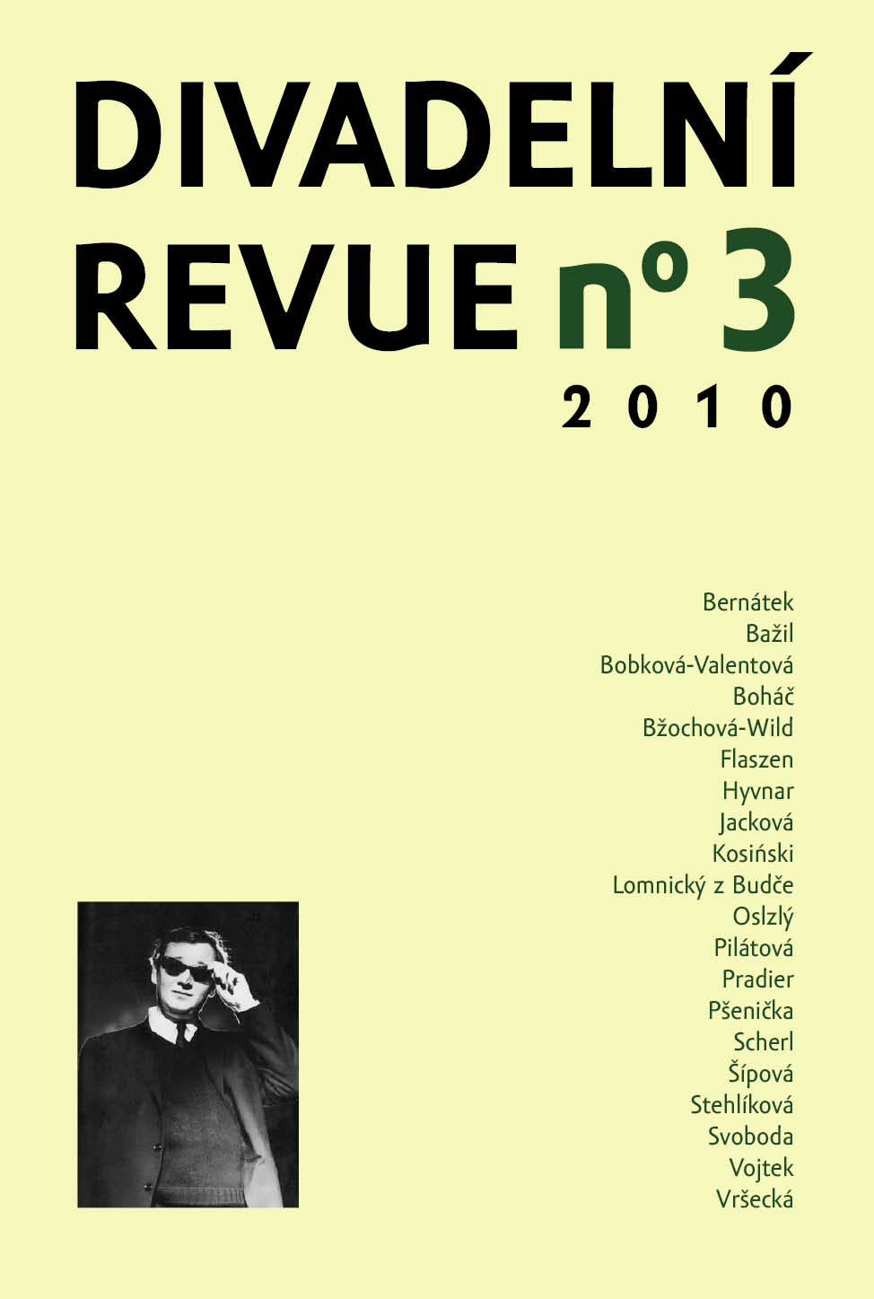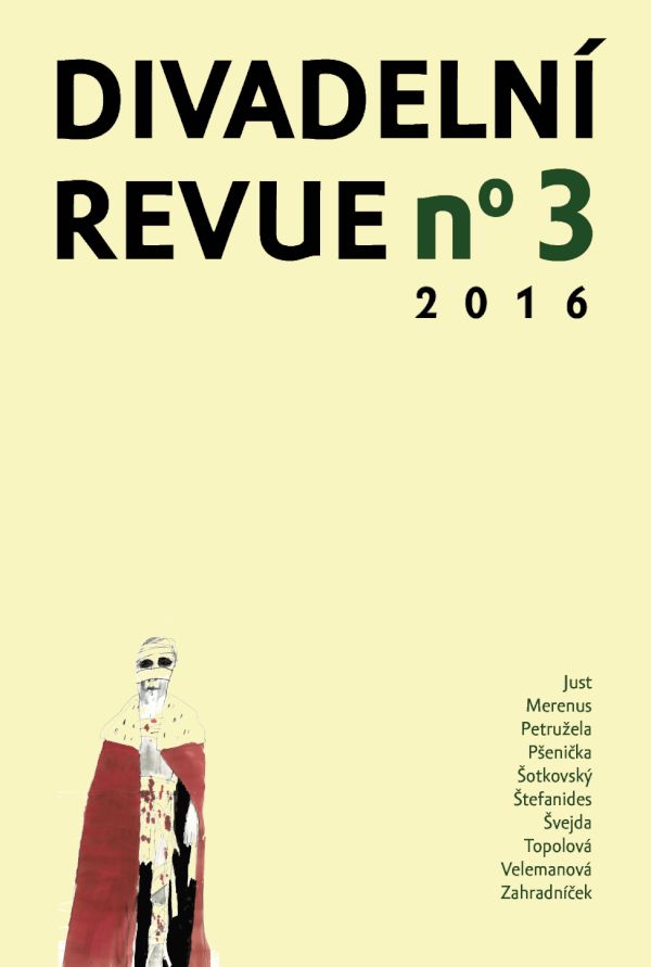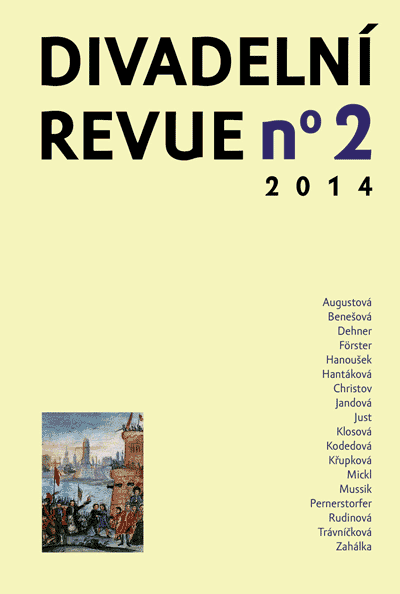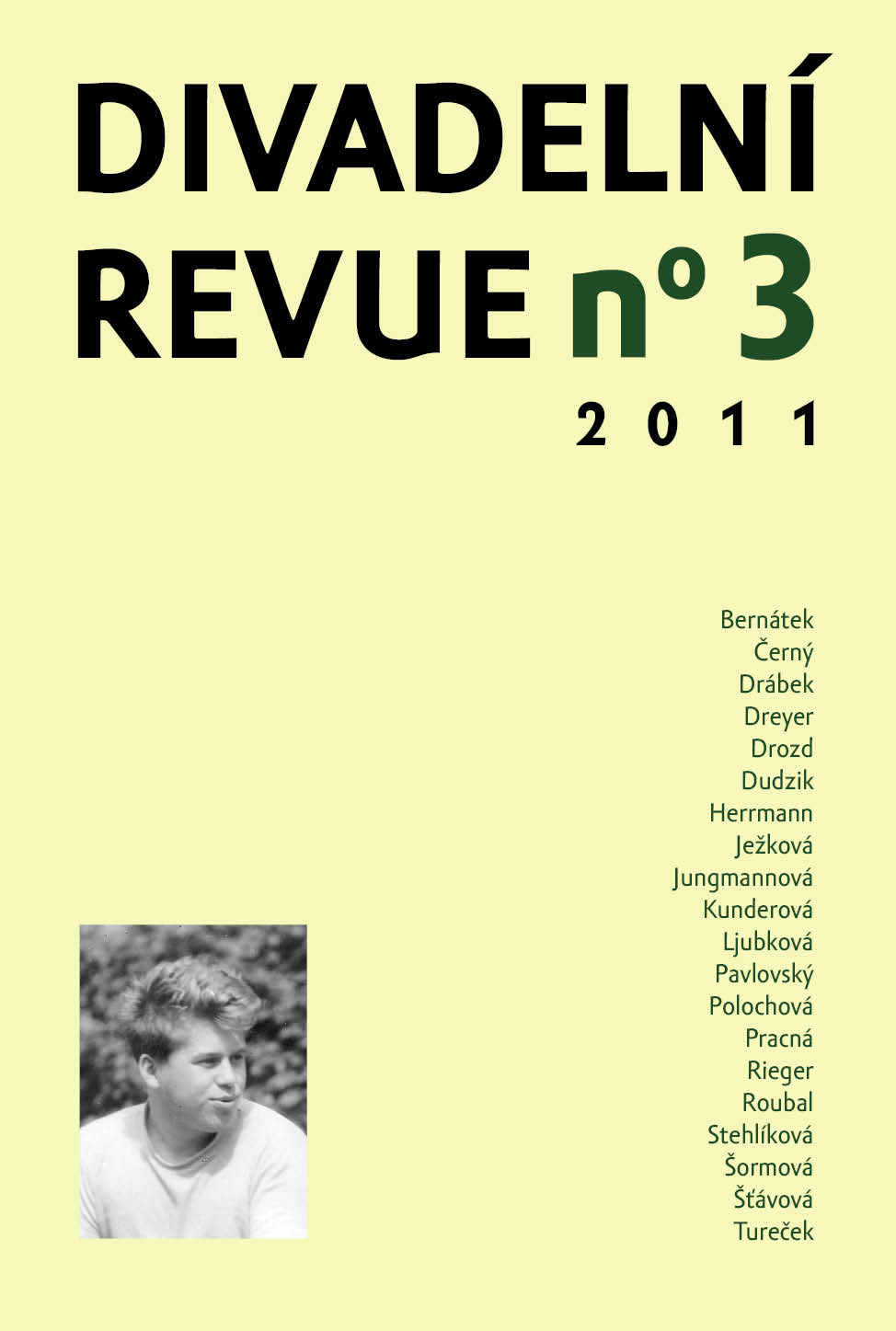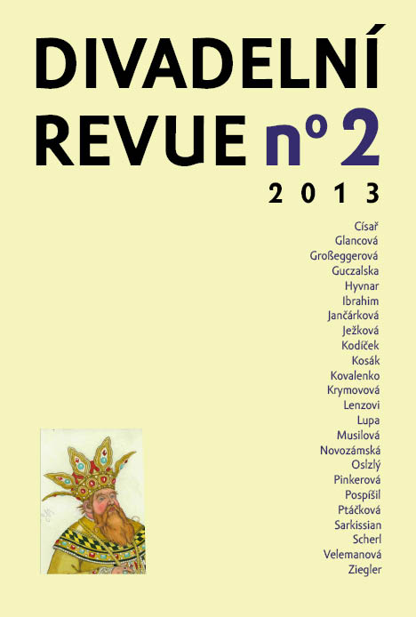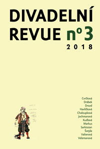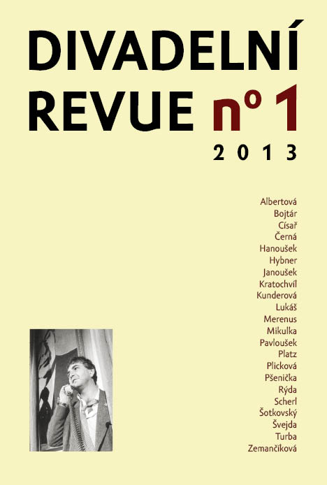 We welcome submissions of articles in the following languages: Czech, Slovak, English, French, German and Polish. Please send your submissions in an electronic format (doc, rtf, odt) to the following address: divadelni.revue/at/divadlo.cz. Consult alternative formats of submission (CD-ROM, memory stick etc.) with the editorial office. All submissions must contain the name of the author and contact information (email, phone number, address), and a short biographical note. Submissions of critical studies must include a résumé of maximum 200 words in Czech, and the English translation of the title where applicable. Please use footnotes, not endnotes. For the format for submitting photographs and other appendices, please consult the editorial office. The maximum length of submissions according to the genre is: 35 pages for critical studies, and 8 pages for reviews (including footnotes). A standard page is 1 800 keystrokes including spaces. Divadelní revue follows its own citation norm, based on the norm ČSN ISO 690 (see: www.divadlo.cz/revue/norma.php). The stylesheet is available at: www.divadlo.cz/revue/pokyny.php. Authors are responsible for obtaining clearance for photographs, illustrations and any other documents protected by copyright, as well as for re-published texts. Articles published in Divadelní revue may be quoted and re-published only with the author’s written permission and with full citation.