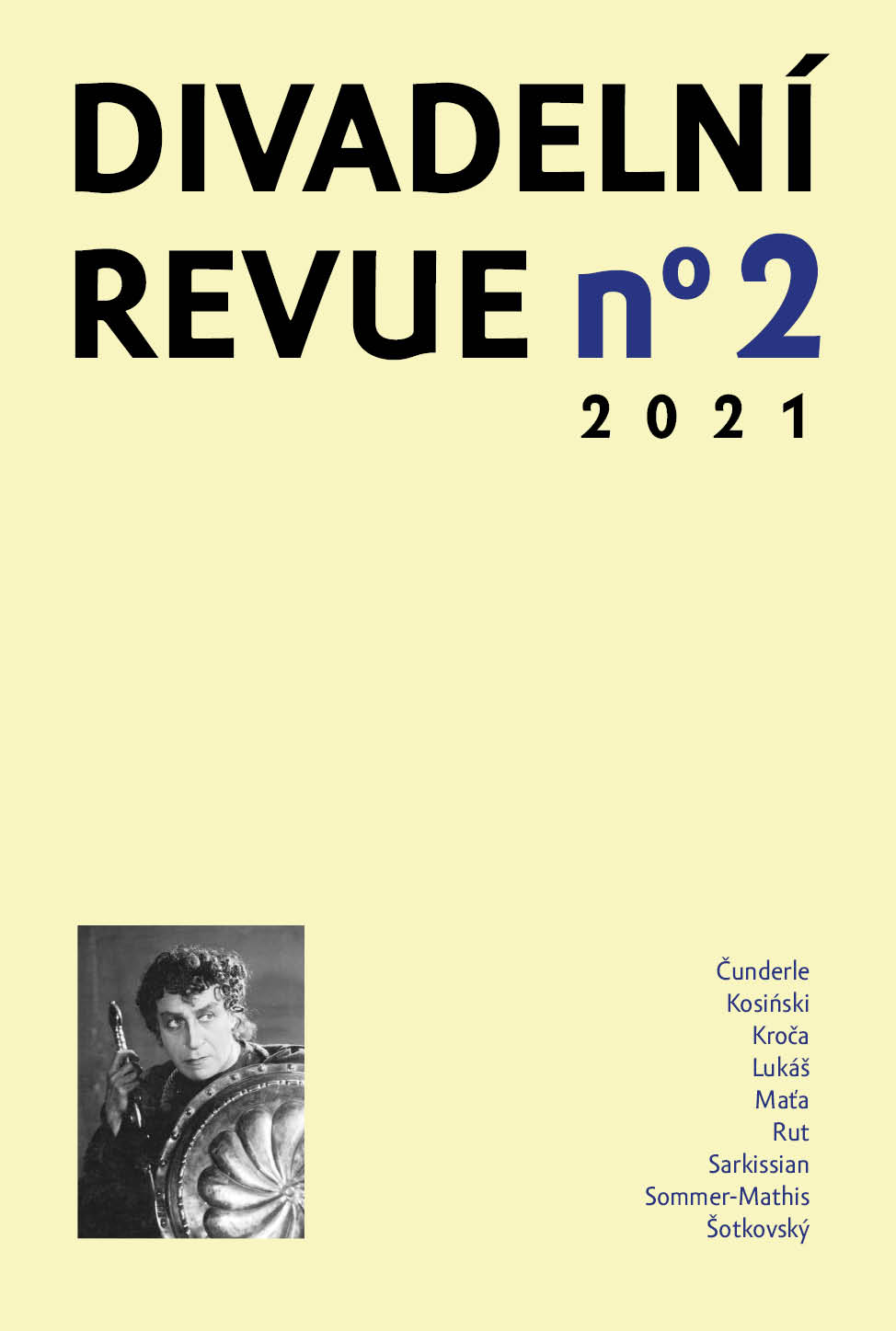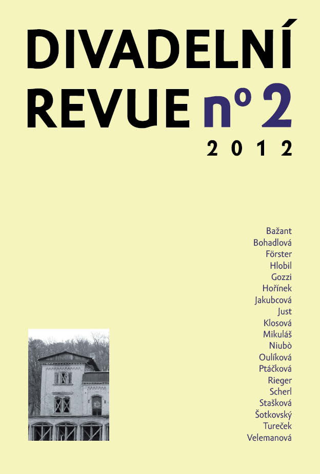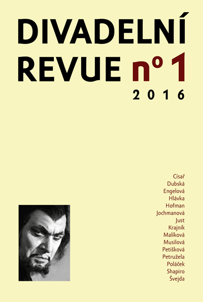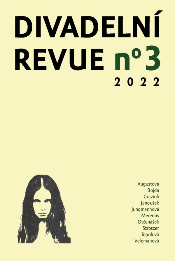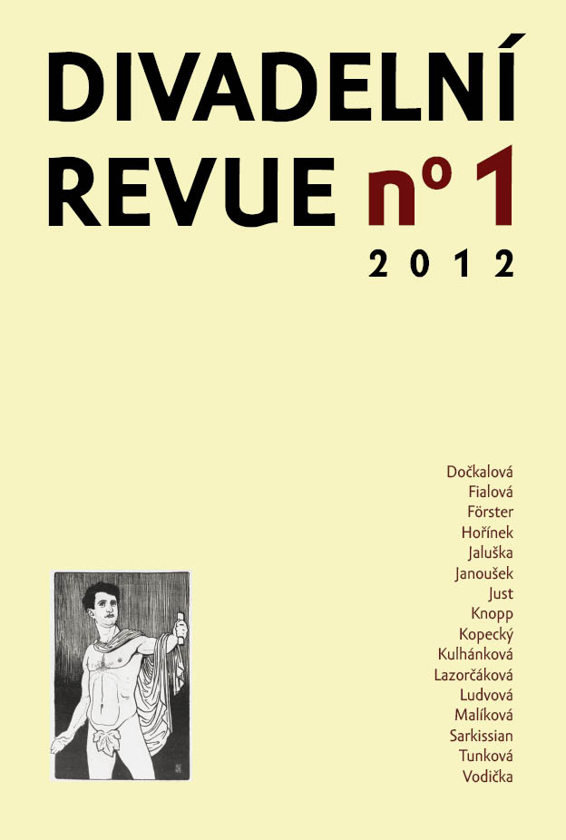 We welcome submissions of articles in the following languages: Czech, Slovak, English, French, German and Polish. Please send your submissions in an electronic format (doc, rtf, odt) to the following address: divadelni.revue/at/divadlo.cz. Consult alternative formats of submission (CD-ROM, memory stick etc.) with the editorial office. All submissions must contain the name of the author and contact information (email, phone number, address), and a short biographical note. Submissions of critical studies must include a résumé of maximum 200 words in Czech, and the English translation of the title where applicable. Please use footnotes, not endnotes. For the format for submitting photographs and other appendices, please consult the editorial office. The maximum length of submissions according to the genre is: 35 pages for critical studies, and 8 pages for reviews (including footnotes). A standard page is 1 800 keystrokes including spaces. Divadelní revue follows its own citation norm, based on the norm ČSN ISO 690 (see: www.divadlo.cz/revue/norma.php). The stylesheet is available at: www.divadlo.cz/revue/pokyny.php. Authors are responsible for obtaining clearance for photographs, illustrations and any other documents protected by copyright, as well as for re-published texts. Articles published in Divadelní revue may be quoted and re-published only with the author’s written permission and with full citation.